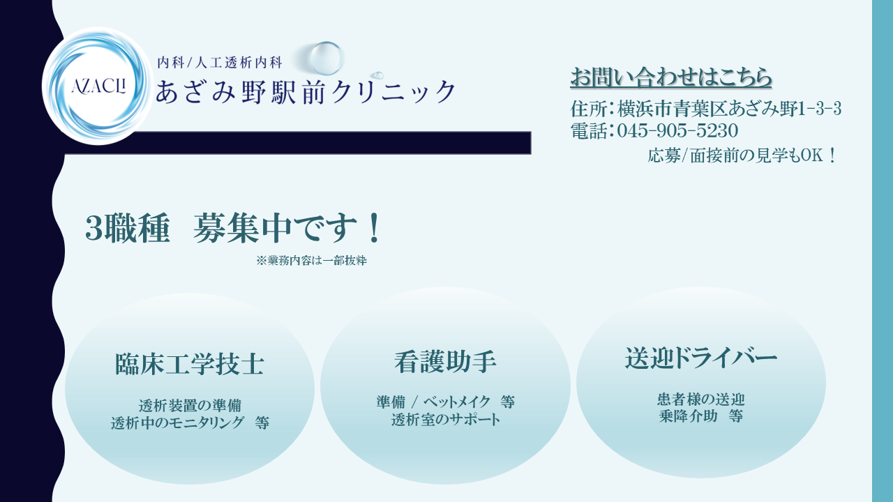 現在、あざみ野駅前クリニックでは下記3職種を募集しています!