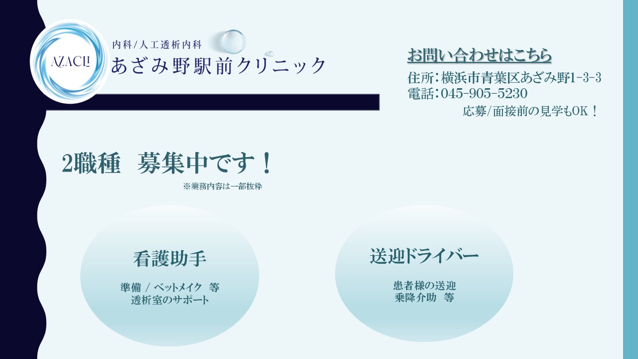 現在、あざみ野駅前クリニックでは下記2職種を募集しています!